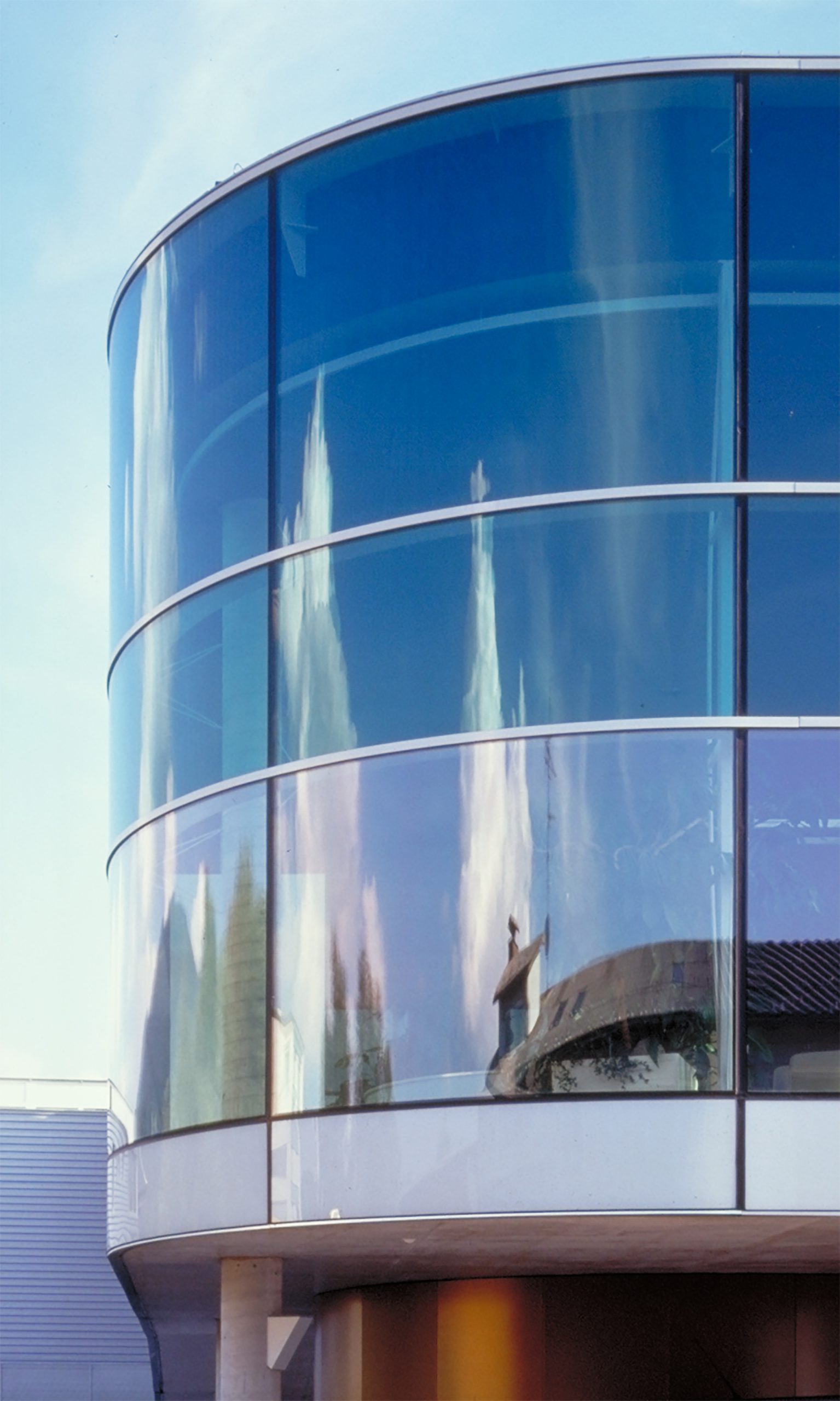 Die Auseinandersetzungen mit der vorhandenen Topographie und Typologie des Ortes entlang der Bundesstrasse wurden für die Disposition und Niveaus der verschiedenen Gebäudeteile genutzt und bildeten den Ausgangspunkt der städtebaulichen Entwurfsidee. Eine über die gesamte Gebäudetiefe reichende Rampe verbindet die beiden Hauptauststellungsbereiche TOYOTA und LEXUS. Diese Rampe wiederholt sich im Untergeschoss. Der TOYOTA Ausstellungsbereich ist zweigeschossig. Im Eingangsbereich ist die Halle über zwei Geschosse offen. Der gesamte Bereich dient vornehmlich der Autopräsentation. Die Info-Kundendienstzone sowie Lagerausgabe sind in einer offenen Struktur angeordnet. Verkaufskojen ergänzen das Raumprogramm. Das Obergeschoss wird über eine gebäudeinterne Rampenauffahrt erschlossen und ebenfalls als Ausstellungsfläche genutzt, wird aber auch für Mitarbeiterschulungen verwendet. Der LEXUS Ausstellungsbereich bildet den kopfartigen Gebäudeabschluss. Die Erschliessung erfolgt einerseits vom Terrain über die darunterliegende Glasrotunde, andererseits vom Toyota-Ausstellungsbereich.